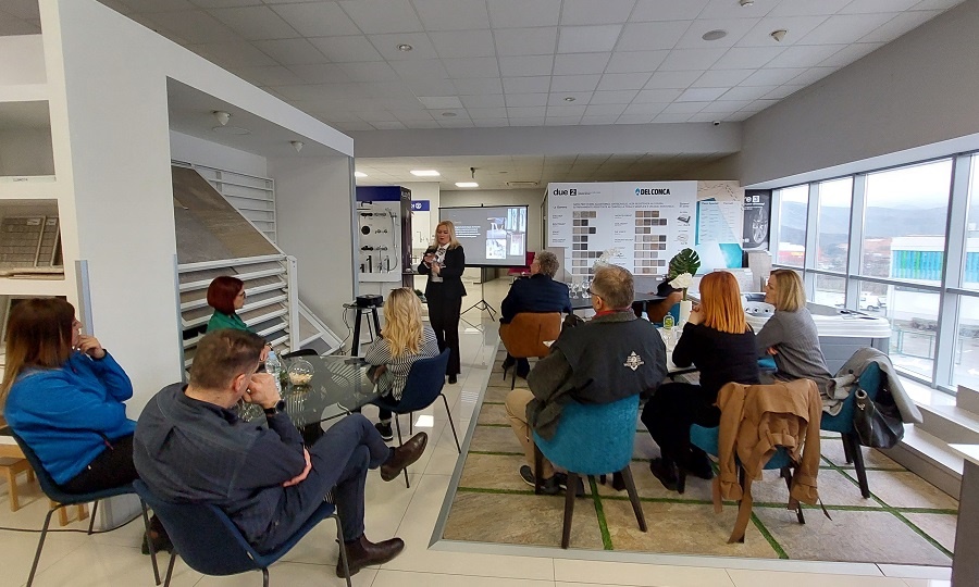 Drugi dio prezentacije bio je posvećen proizvodima iz naše vlastite proizvodnje, brenda K-Stone. U samom uvodu gosti su upoznati sa naprednim procesom Water Jet obrade materijala koji se primjenjuje u našoj proizvodnji, i pomoću kojeg iz keramičkih ploča XL formata za naše kupce stvaramo unikatne proizvode. Istaknuli smo napredna obilježja naših proizvoda, njihovu visoku otpornost na sve vrste oštećenja, te lakoću održavanja i dugotrajnost prvobitnog izgleda.