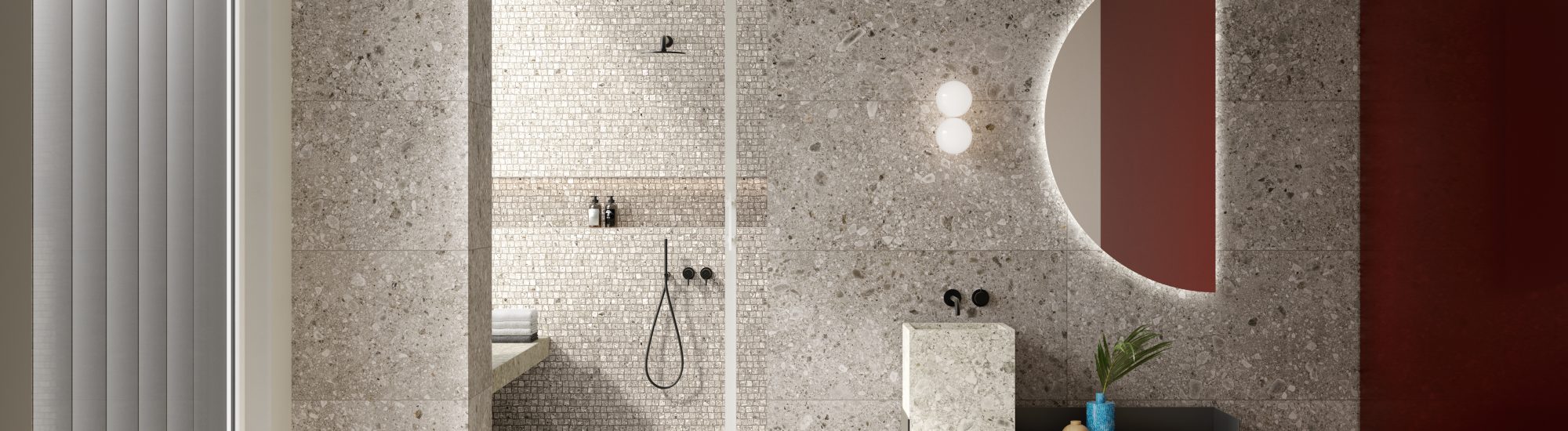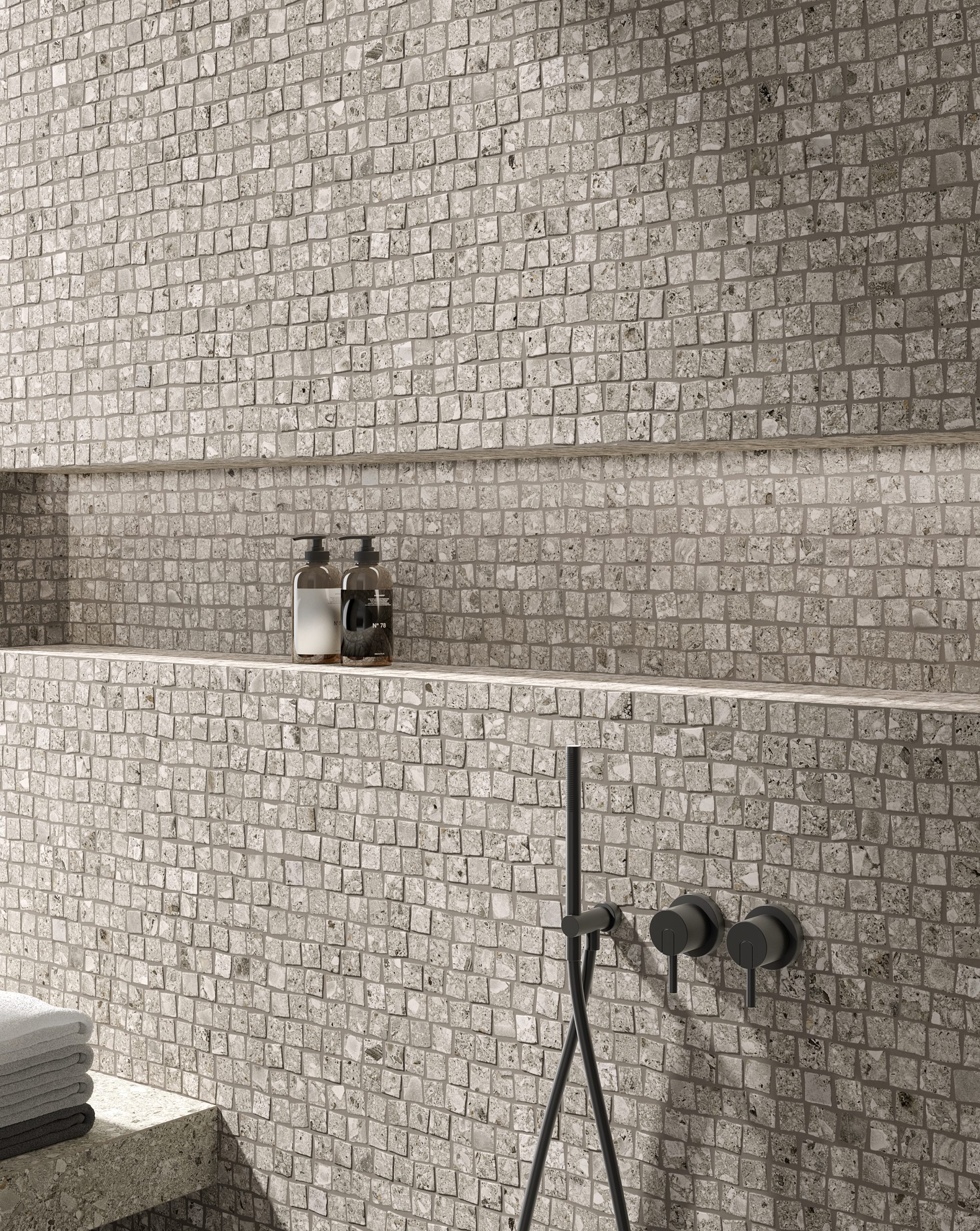 Stelvio su porculanske pločice imitacije kamena i dostupne su u tri nijanse. Inspirirane su ponovnim otkrićem prirodnog talijanskog kamena pod nazivom “Ceppo di Gré”, iskopanog s planine Clemo u mjestu koje se zapravo zove Gré. Teksturu pločice karakteriziraju mali i veliki kamenčići u graduiranim bojama, koji daju posebnu ljepotu i dubinu površini. Savršena je za stambene i poslovne lokacije, te se izvrsno kombinira s ostalim uzorcima, kao što su beton i drvo.